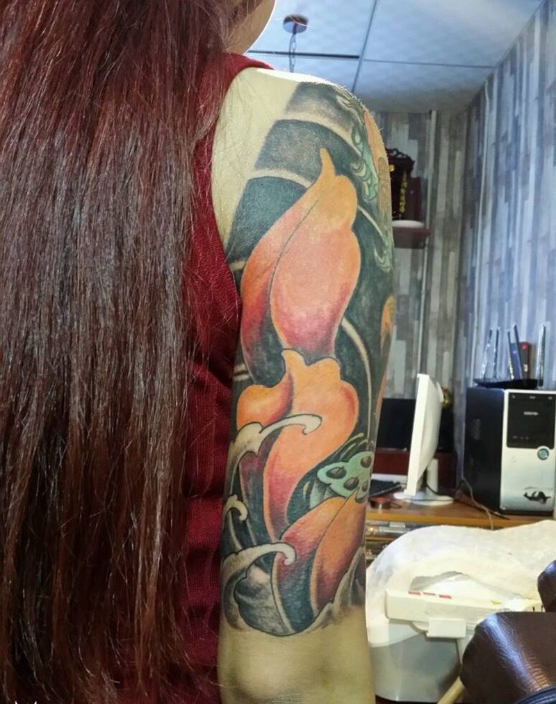 一组15张莲花纹身手