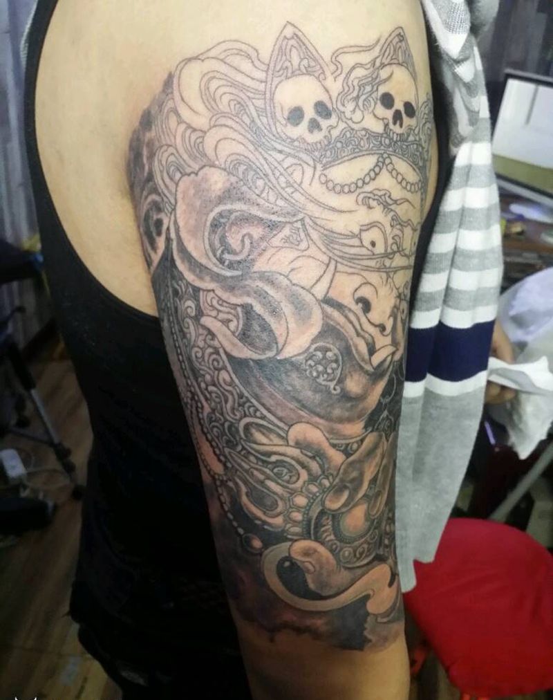 大黑天纹身图片_手臂传统鬼神成品手稿纹身图案
