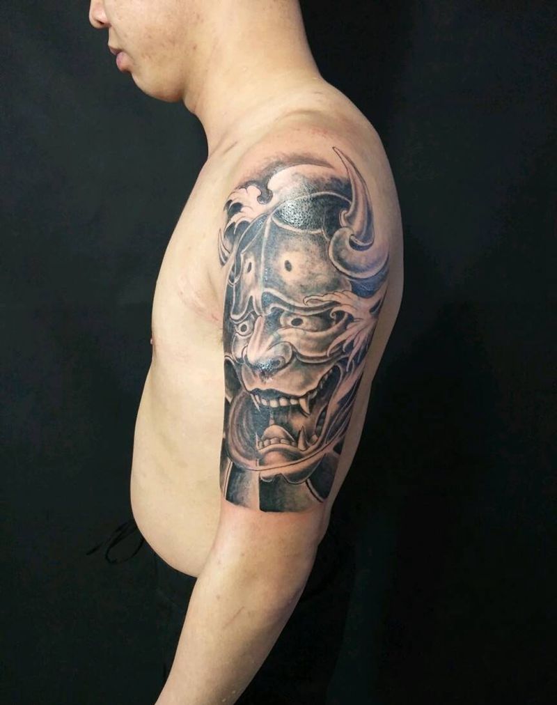 般若纹身图片_肩部手臂传统鬼神成品纹身图案
