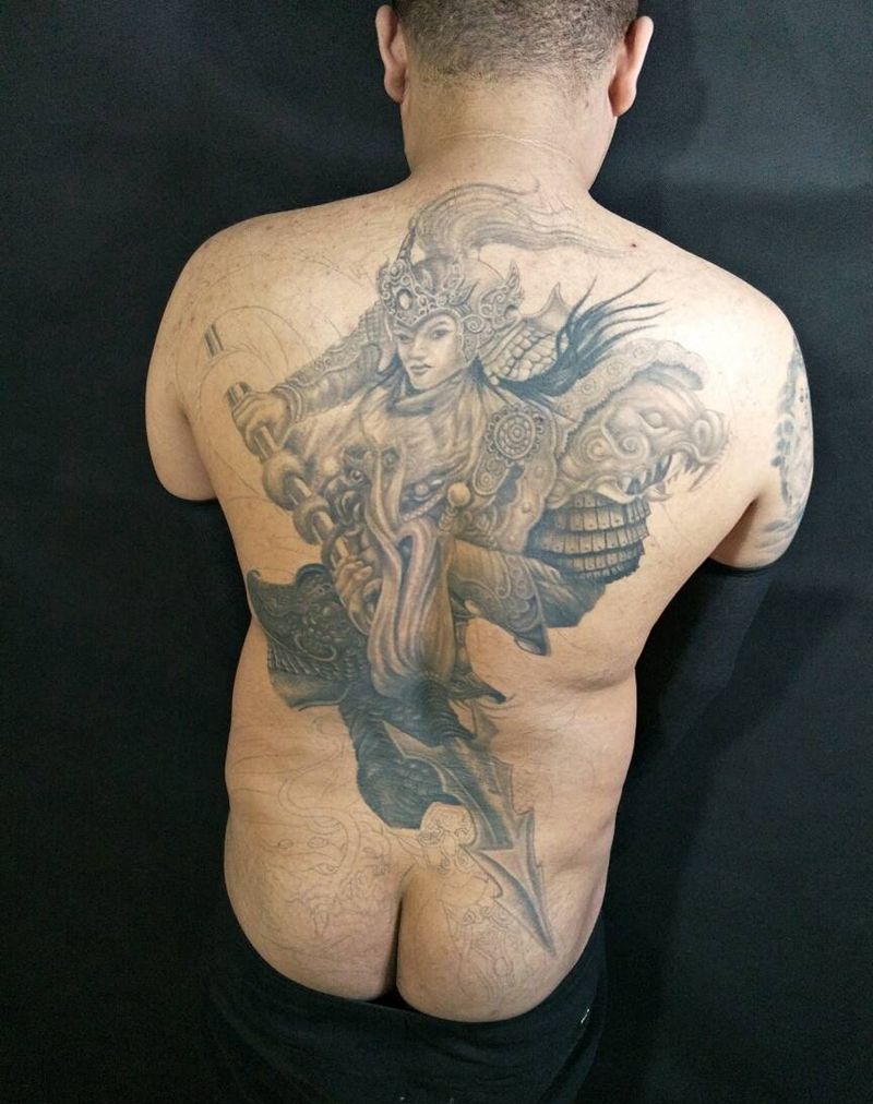 当前位置: 首页 >山西省太原市纹身店-太原翼龙刺青工作室纹身图案>龙临纹身图片_背部传统肖像人物纹身图案