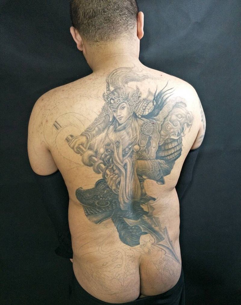 龙临纹身图片_背部传统肖像人物纹身图案