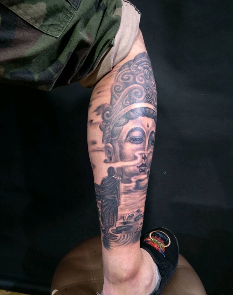 伏虎归来纹身图片_腿部脚部传统习俗鬼神宗教成品手稿纹身图案