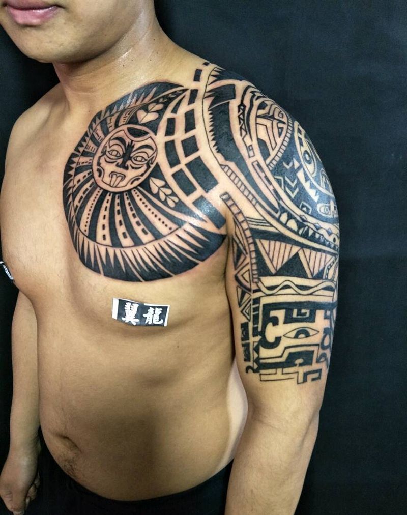 图腾半甲纹身图片_肩部胸部手臂欧美传统几何成品手稿纹身图案