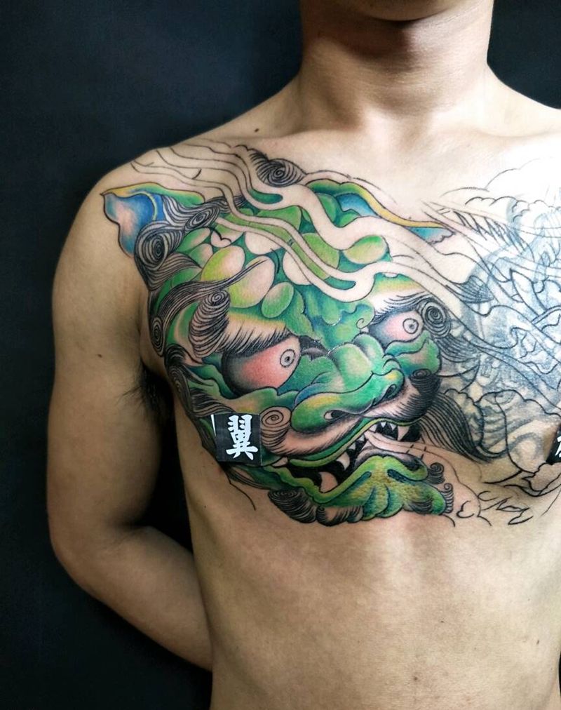 花胸福狮纹身图片_胸部传统动物静物鬼神成品手稿纹身图案