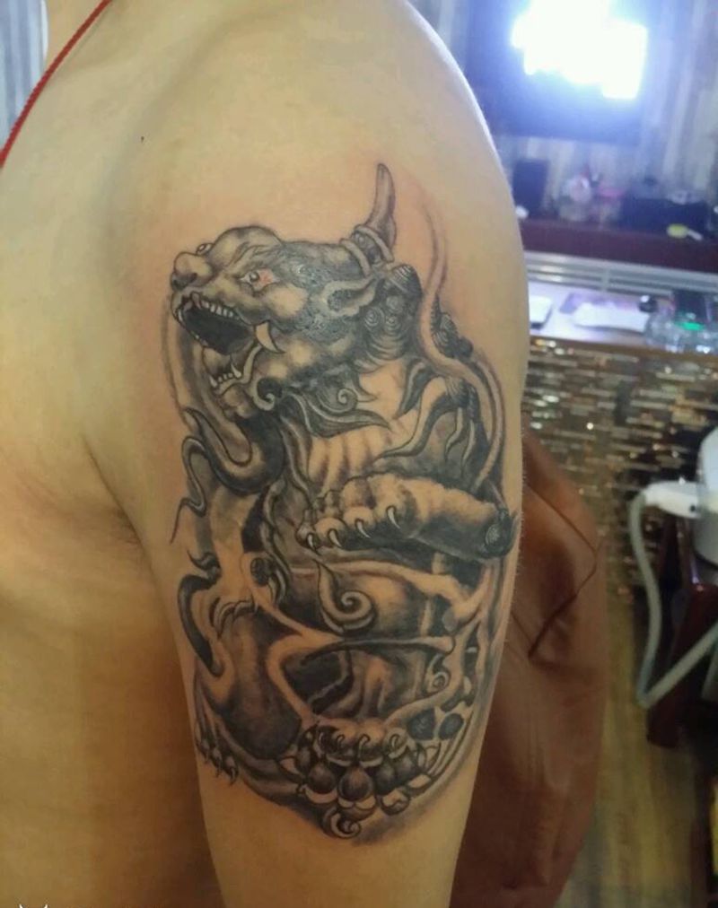 貔貅纹身图片_手臂传统鬼神成品手稿纹身图案