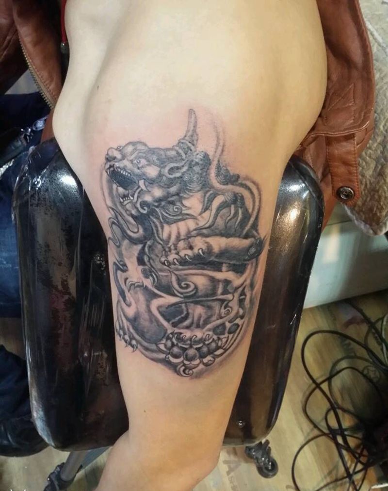 貔貅纹身图片_手臂传统鬼神成品手稿纹身图案