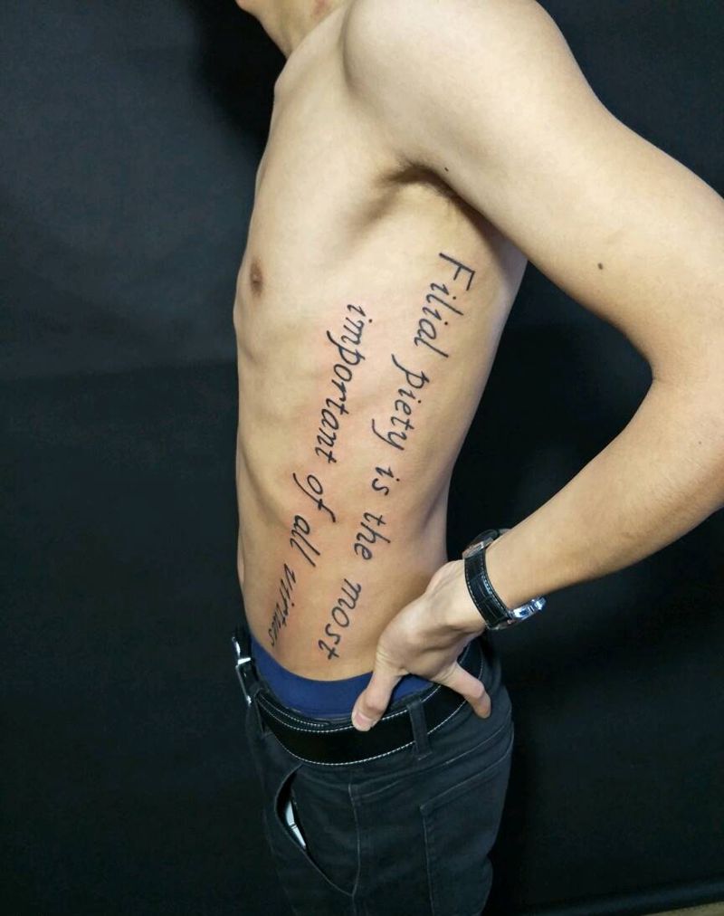 百善孝为先纹身图片_腰部欧美字符原创成品手稿纹身图案