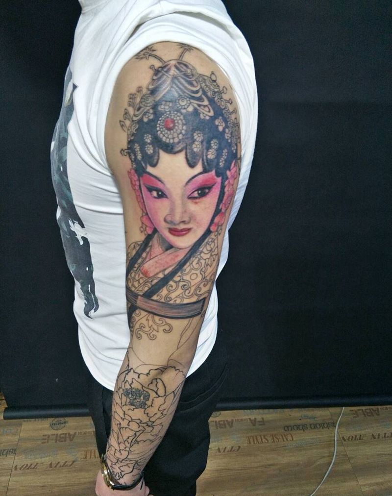 当前位置: 首页 >山西省太原市纹身店-太原翼龙刺青工作室纹身图案>孤芳自赏纹身图片_肩部手臂手部传统人物植物原创成品手稿纹身图案