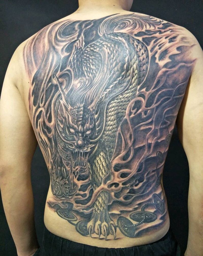 • T云龙九郎纹身图片_背部老传统云龙九郎纹身图案