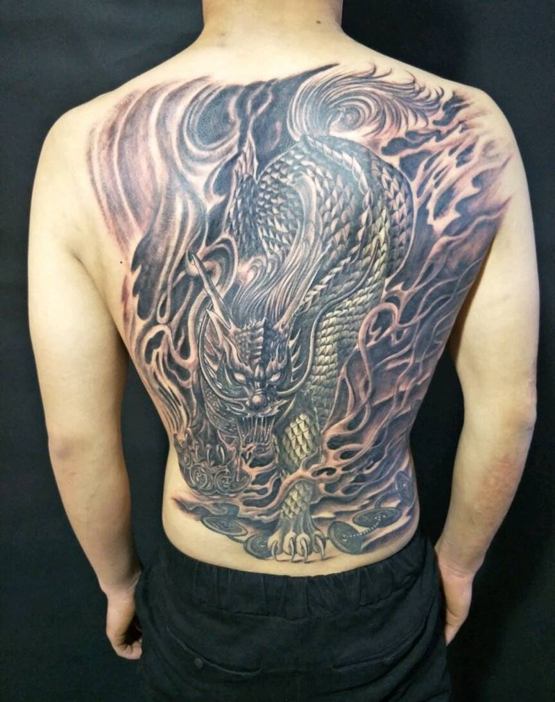 • T云龙九郎纹身图片_背部老传统云龙九郎纹身图案