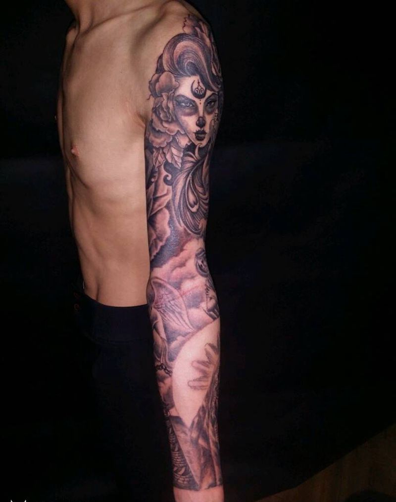 当前位置: 首页 >山西省太原市纹身店-太原翼龙刺青工作室纹身图案>欧美花臂纹身图片_肩部手臂手部欧美写实人物植物静物成品手稿纹身图案