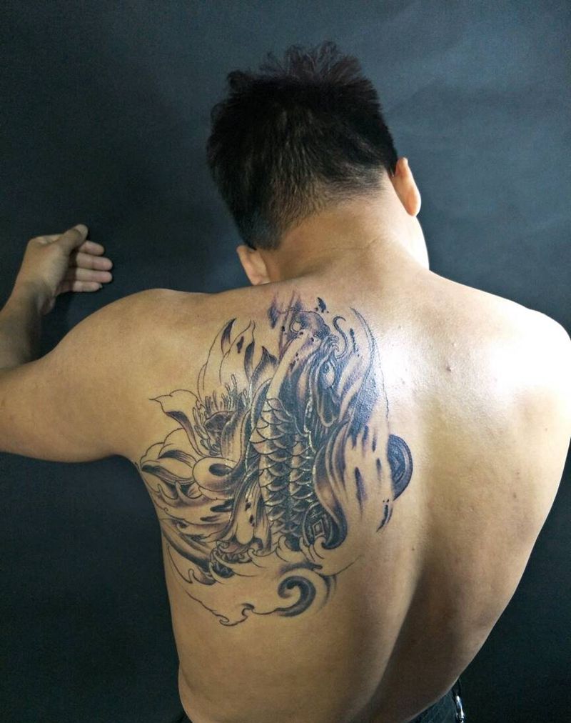 招财进宝纹身图片_肩部背部传统动物成品手稿纹身图案