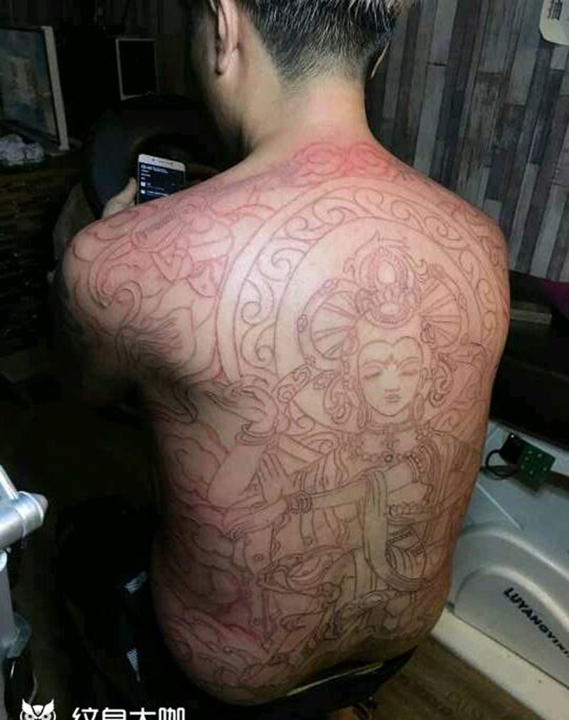 敦煌飞天系列纹身图片_肩部背部传统人物成品手稿纹身图案