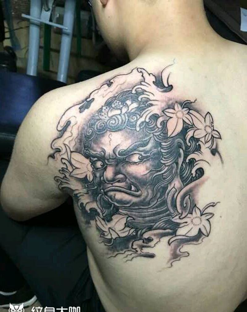 不动明王纹身图片_肩部背部传统人物宗教成品手稿纹身图案