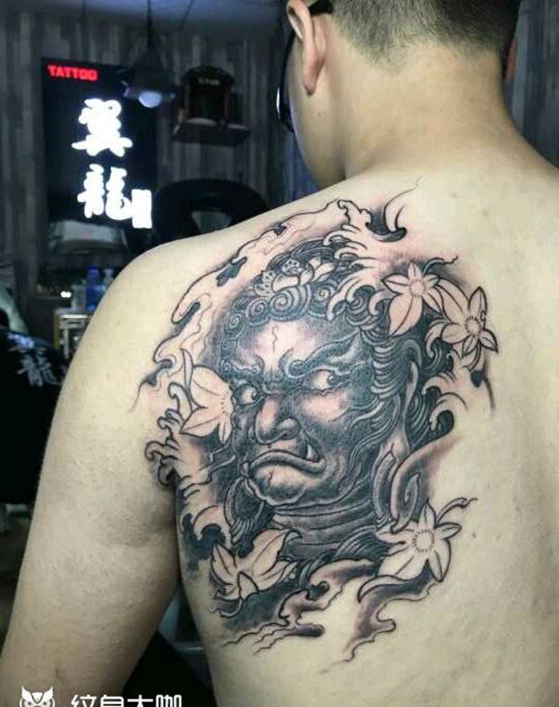 不动明王纹身图片_肩部背部传统人物宗教成品手稿纹身图案