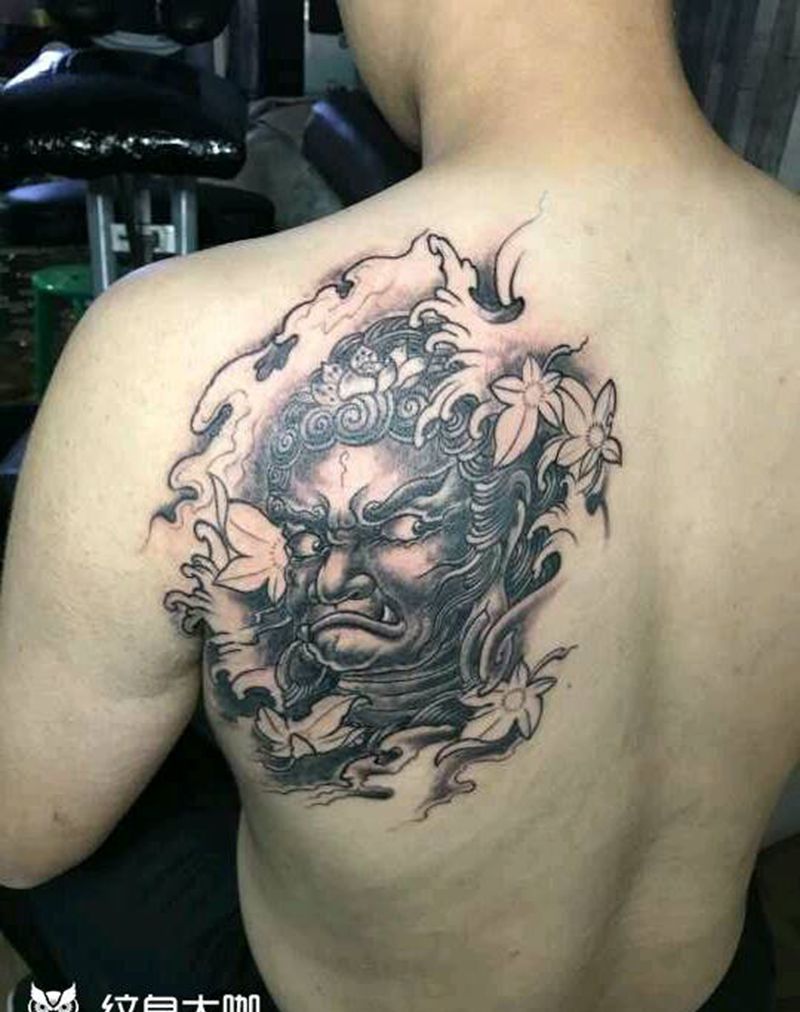 不动明王纹身图片_肩部背部传统人物宗教成品手稿纹身图案