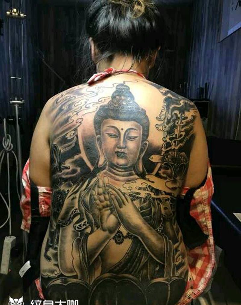 文殊菩萨纹身图片_背部传统人物鬼神成品手稿纹身图案