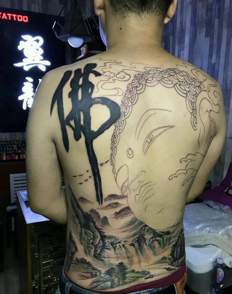 爱我中华纹身图片_背部传统肖像国画字符静物原创成品手稿插画纹身图案