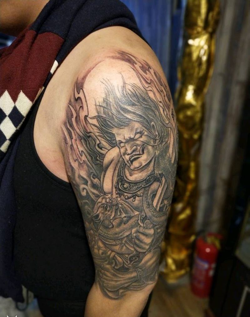 当前位置: 首页 >山西省太原市纹身店-太原翼龙刺青工作室纹身图案>不动明王纹身图片
