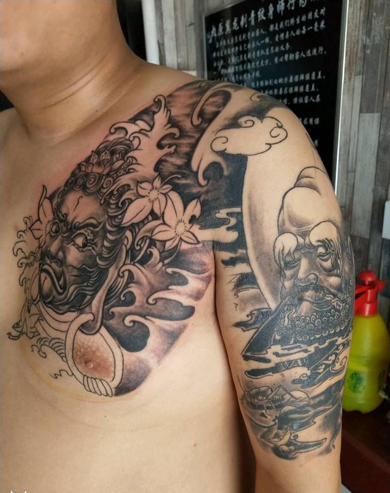 禅纹身图片_胸部手臂传统肖像人物鬼神成品手稿纹身图案