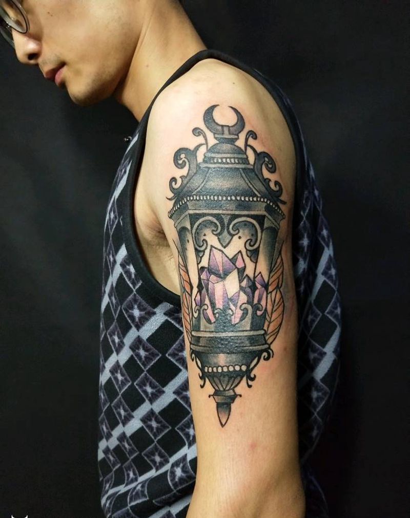 水晶灯纹身图片_手臂欧美传统静物成品手稿纹身图案