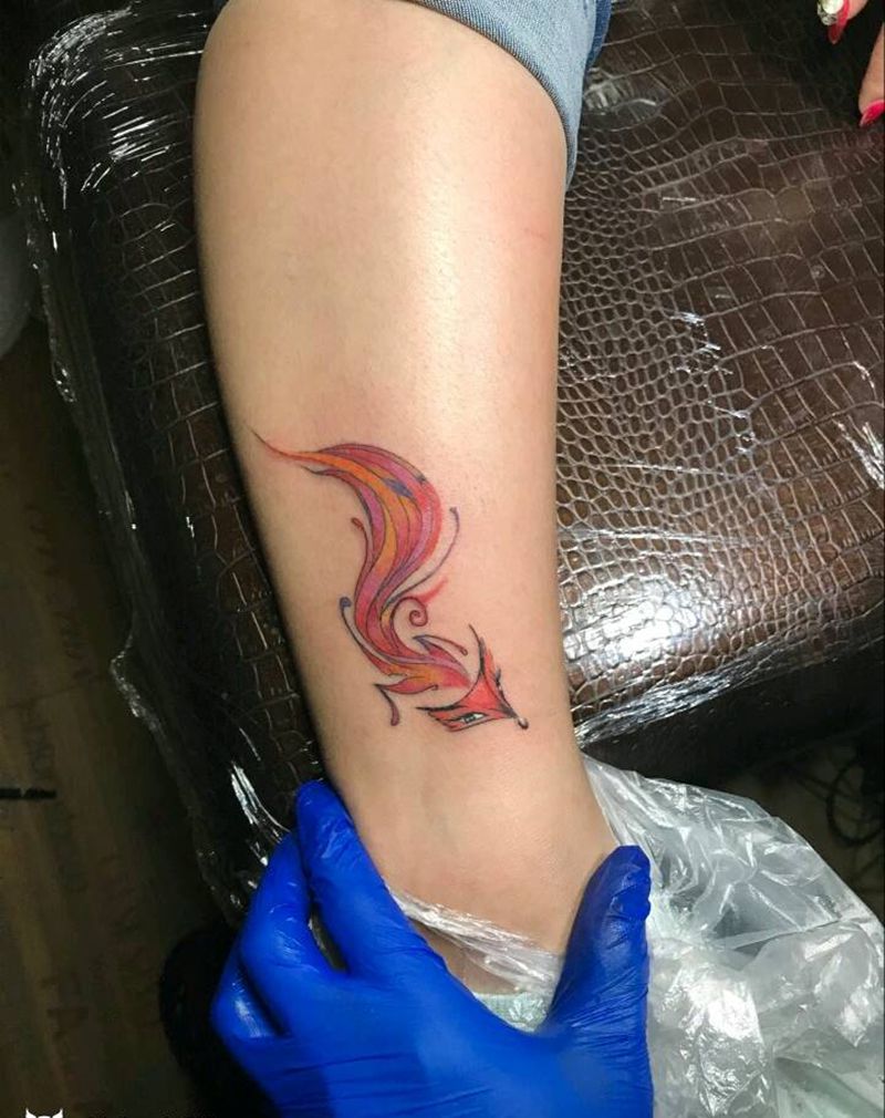 当前位置: 首页 >山西省太原市纹身店-太原翼龙刺青工作室纹身图案>狐狸精纹身图片_腿部脚部传统动物情侣成品手稿纹身图案