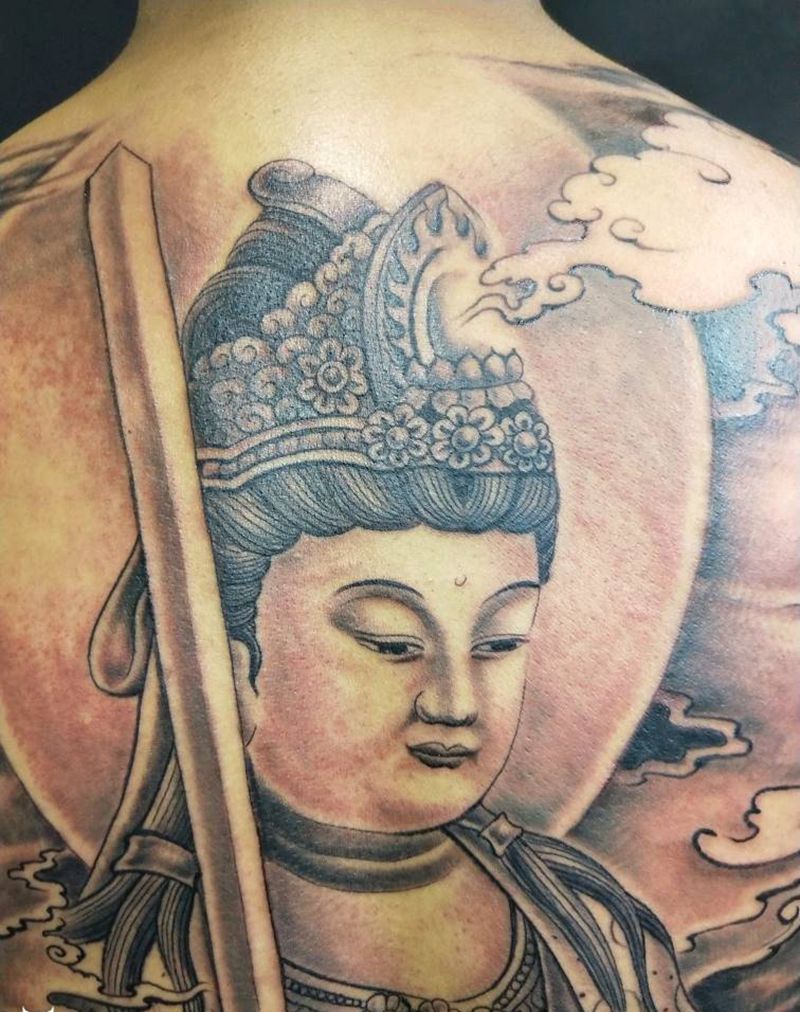 普贤菩萨纹身图片_背部传统习俗肖像人物鬼神宗教成品手稿纹身图案
