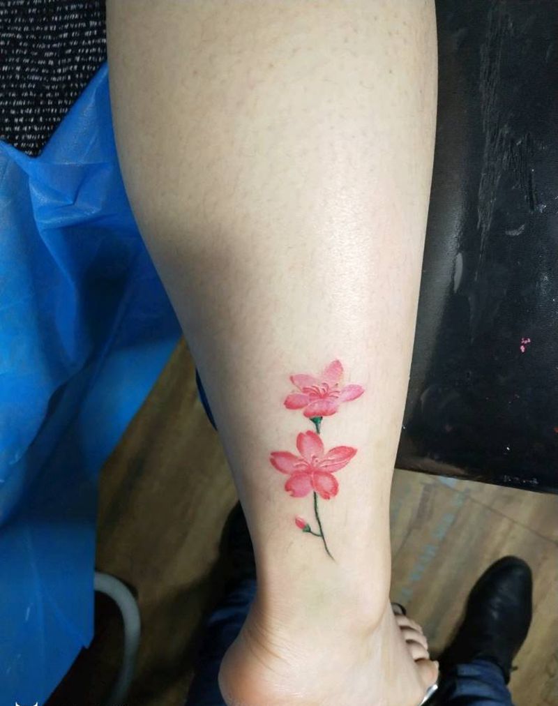 小清新纹身图片_腿部脚部传统植物原创成品手稿纹身图案