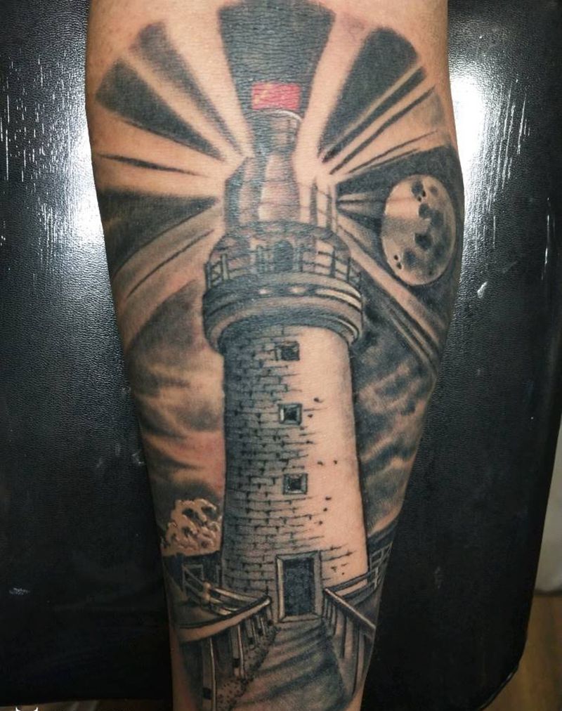 当前位置: 首页 >山西省太原市纹身店-太原翼龙刺青工作室纹身图案>灯塔纹身图片_手臂欧美静物成品手稿纹身图案