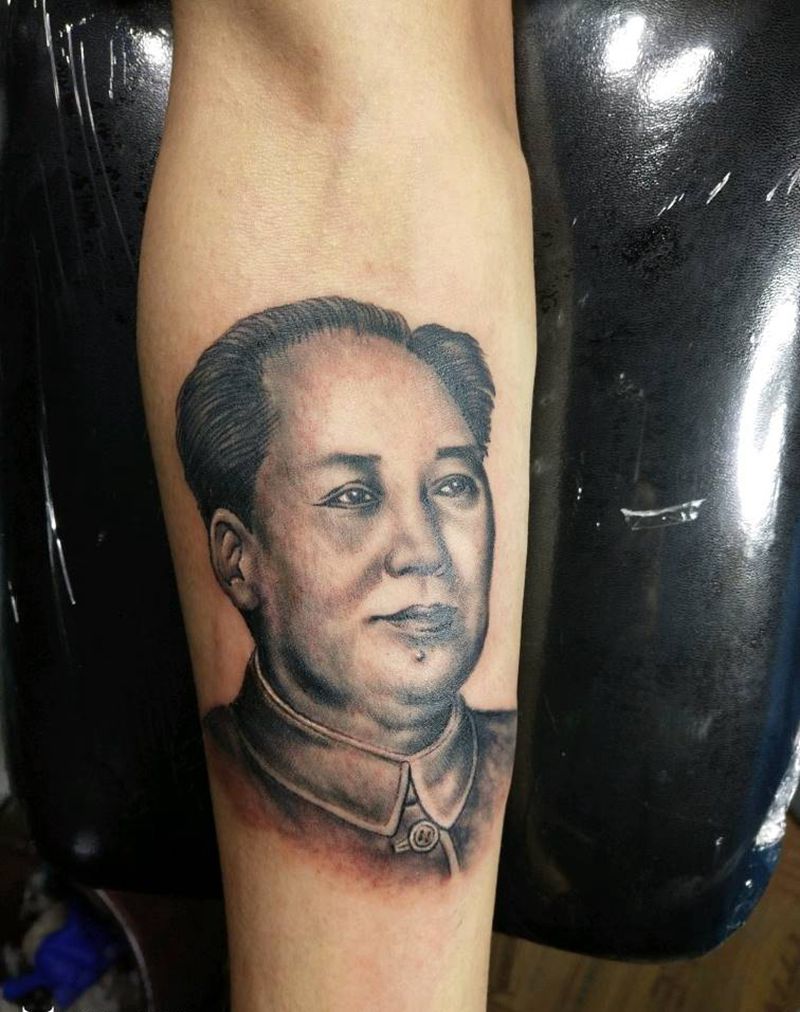 毛爷爷纹身图片_手臂传统肖像写实人物原创成品手稿纹身图案