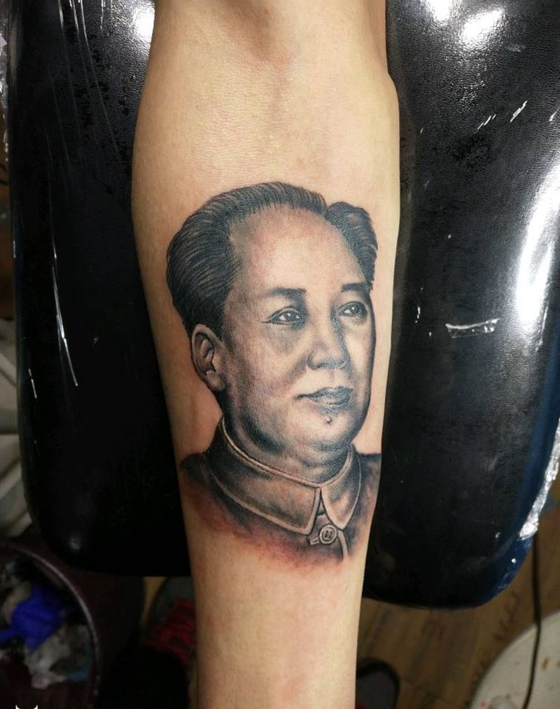 毛爷爷纹身图片_手臂传统肖像写实人物原创成品手稿纹身图案