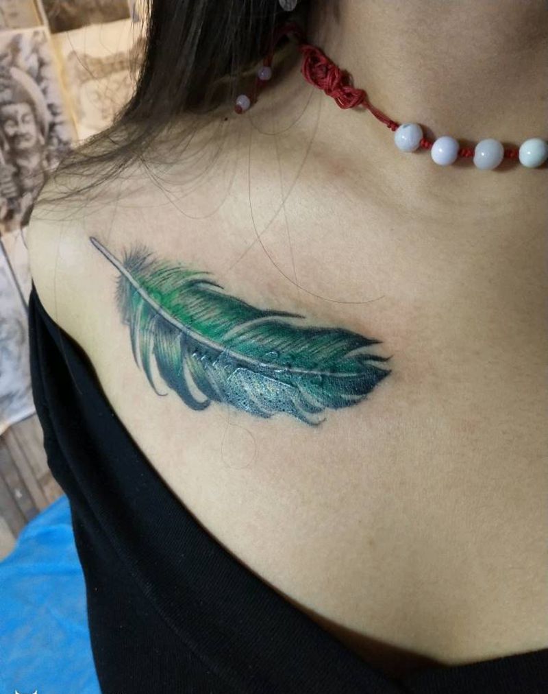 当前位置: 首页 >山西省太原市纹身店-太原翼龙刺青工作室纹身图案>空中的羽毛纹身图片_胸部传统静物成品手稿纹身图案