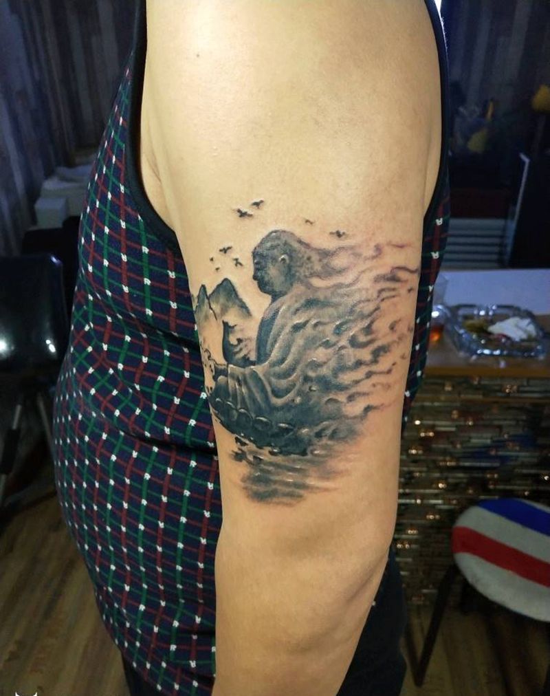 阿弥陀福纹身图片_手臂传统人物鬼神宗教成品手稿纹身图案
