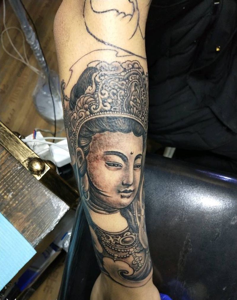 普贤菩萨纹身图片_手臂传统肖像人物鬼神成品手稿纹身图案