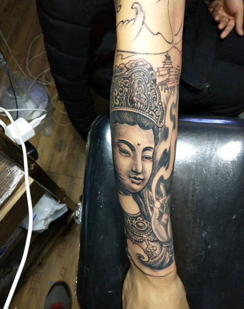 普贤菩萨纹身图片_手臂传统肖像人物鬼神成品手稿纹身图案