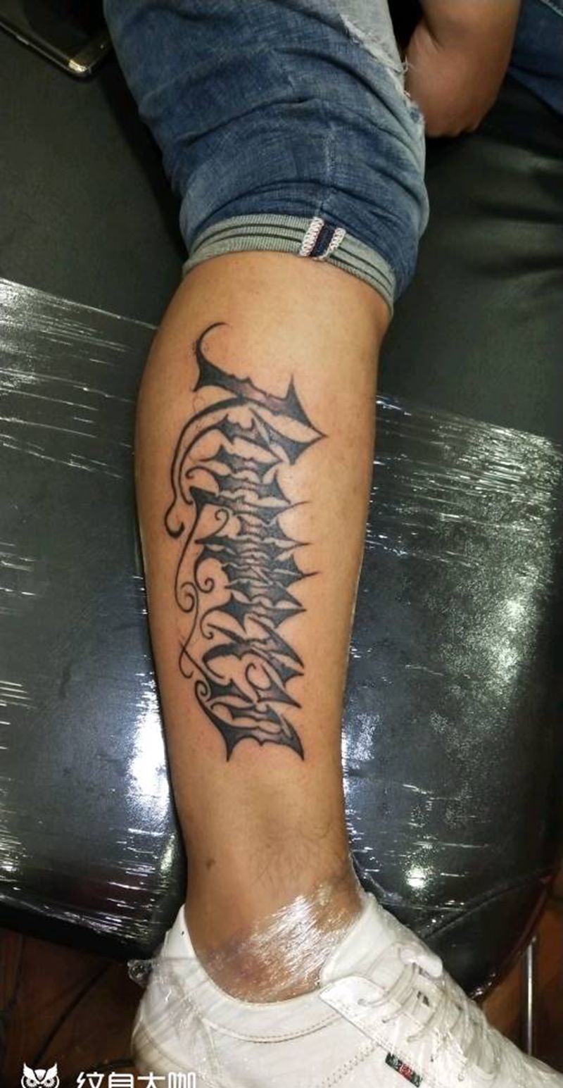 • T网红王老大花腿龙纹身图片_腿部新传统纹身图案