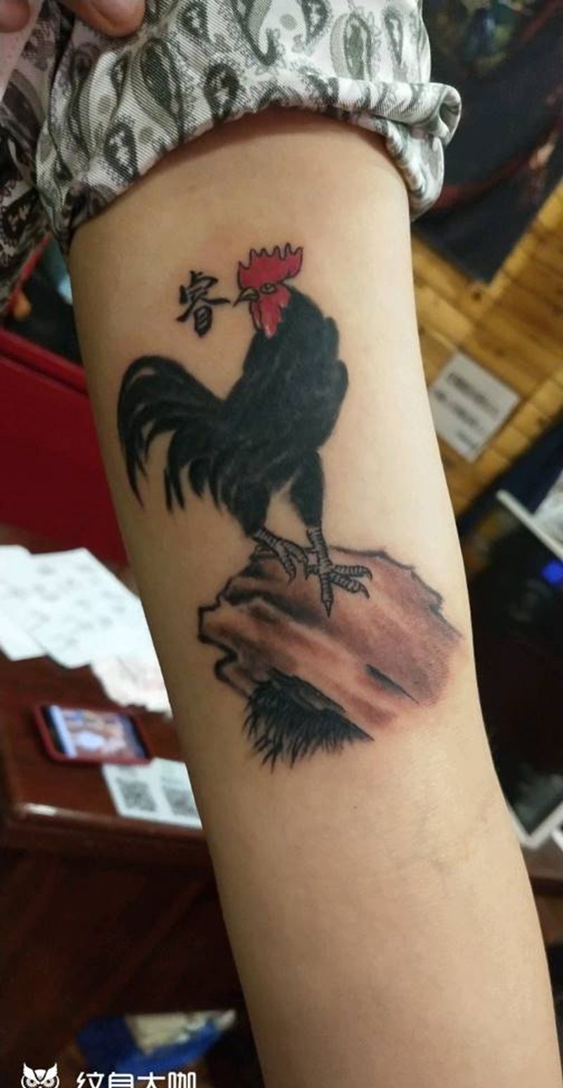 当前位置: 首页 >山西省太原市纹身店-太原翼龙刺青工作室纹身图案>鸡纹身图片_手臂传统习俗国画动物成品手稿插画纹身图案