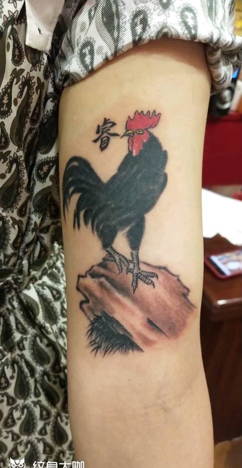当前位置: 首页 >山西省太原市纹身店-太原翼龙刺青工作室纹身图案>鸡纹身图片_手臂传统习俗国画动物成品手稿插画纹身图案