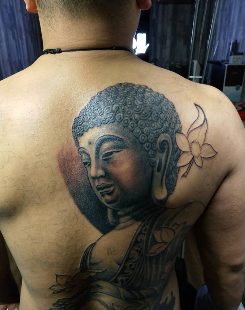 佛纹身图片_背部传统人物鬼神宗教成品手稿纹身图案