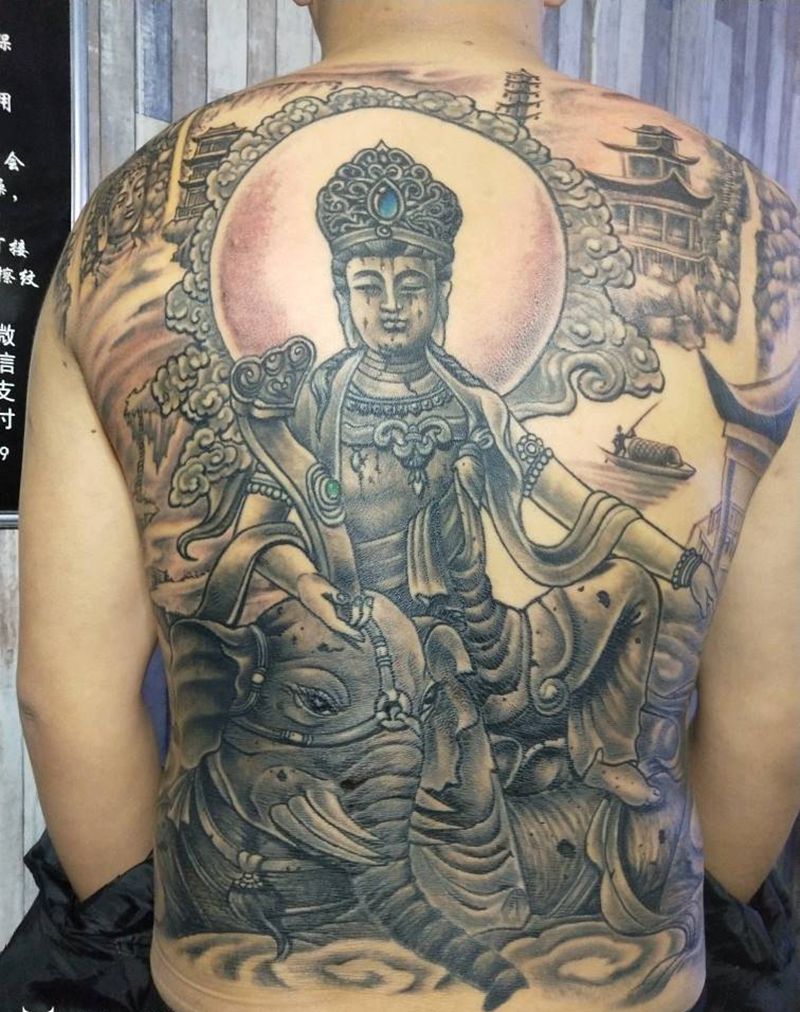普贤菩萨纹身图片_背部传统动物人物静物鬼神宗教原创成品手稿纹身图案