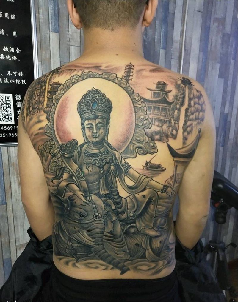 普贤菩萨纹身图片_背部传统动物人物静物鬼神宗教原创成品手稿纹身图案