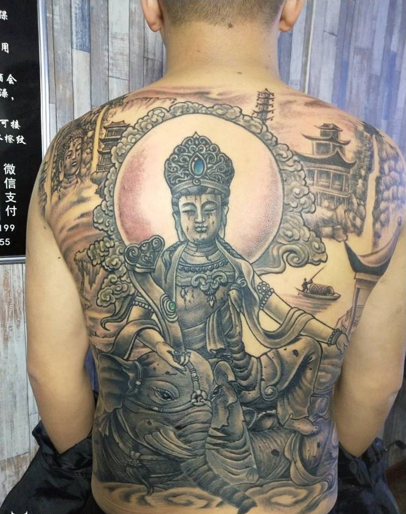 普贤菩萨纹身图片_背部传统动物人物静物鬼神宗教原创成品手稿纹身图案