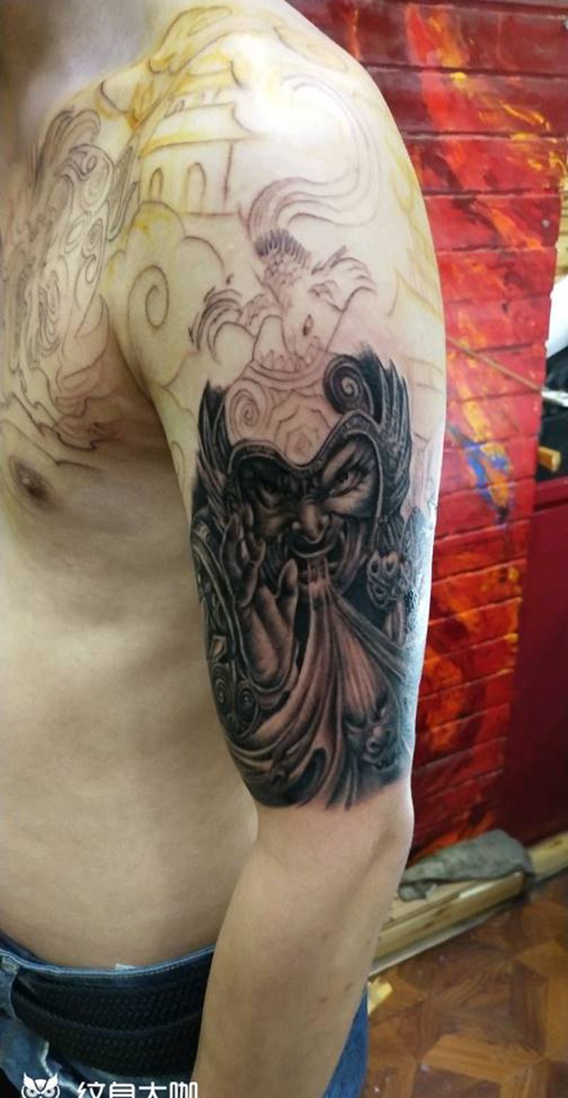 哼哈二将半甲纹身图片_手臂传统人物鬼神成品手稿纹身图案