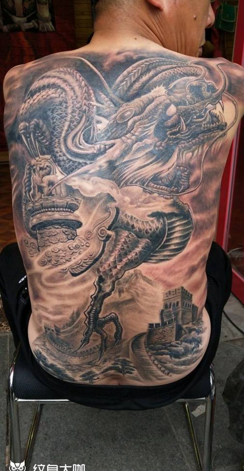 • 黑灰满背纹身图案