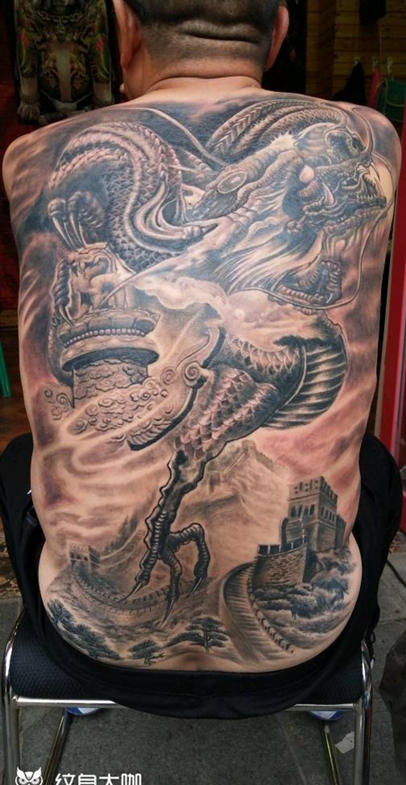 当前位置: 首页 >山西省太原市纹身店-太原翼龙刺青工作室纹身图案>龙佑华夏纹身图片_背部传统植物静物成品手稿插画纹身图案