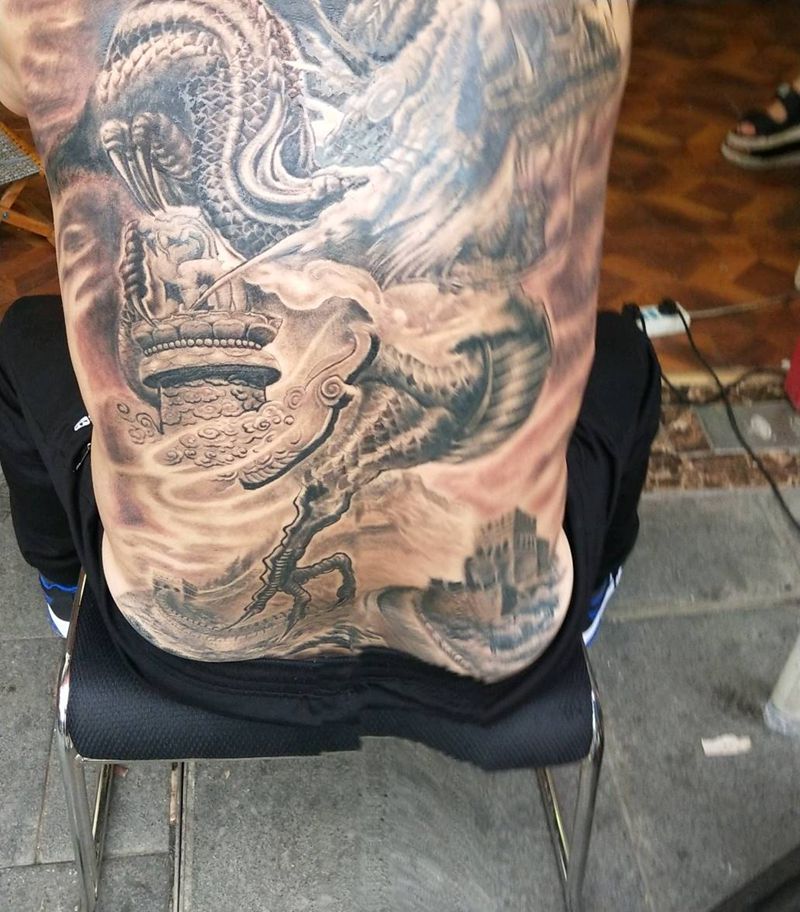 黑灰满背纹身图案