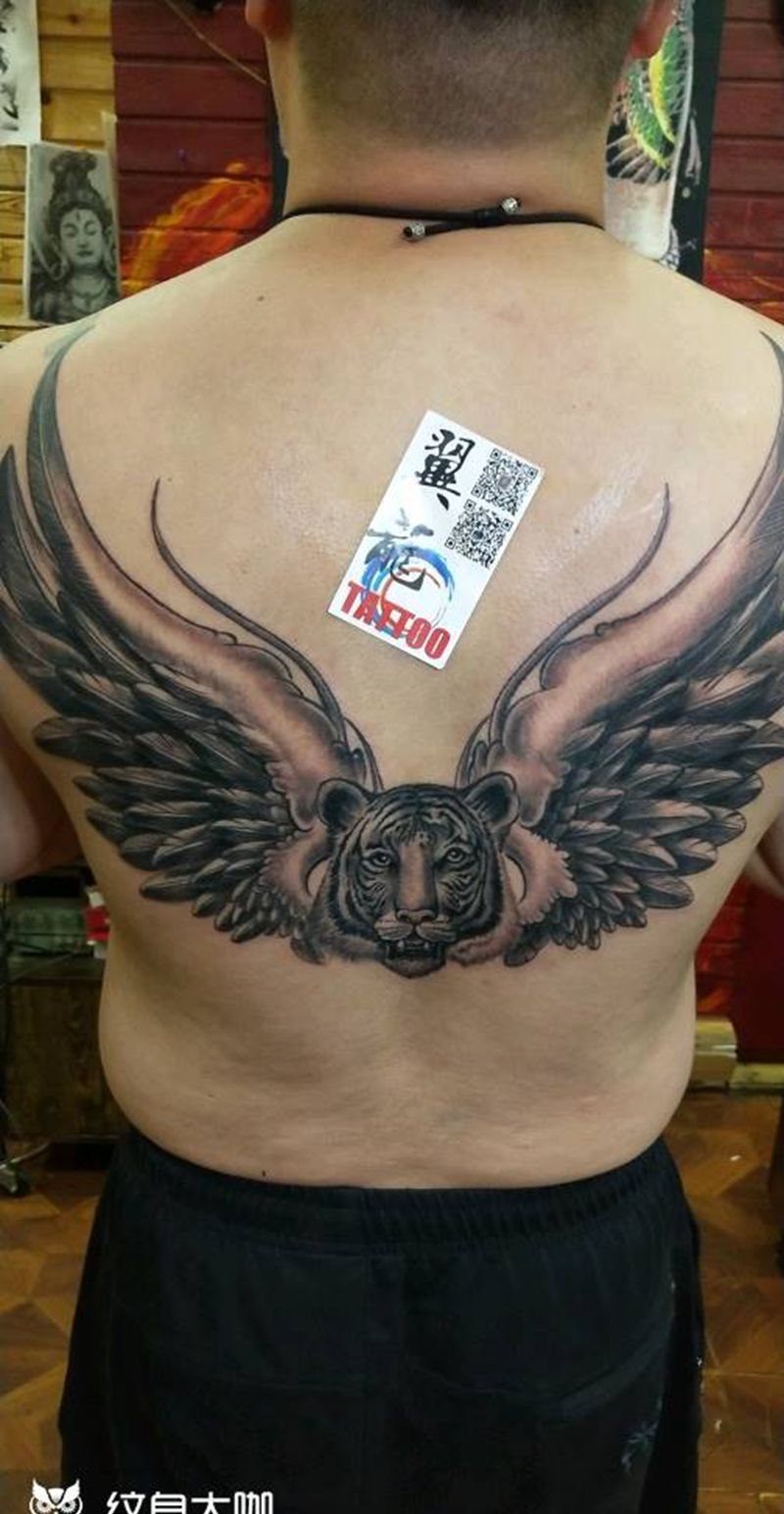 当前位置: 首页 >山西省太原市纹身店-太原翼龙刺青工作室纹身图案>如虎添翼纹身图片_背部老传统纹身图案