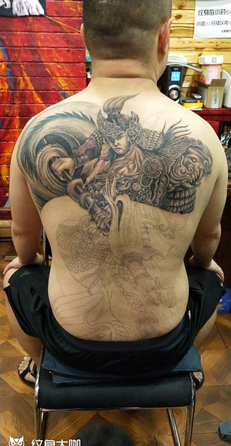 当前位置: 首页 >山西省太原市纹身店-太原翼龙刺青工作室纹身图案>赵云纹身图片_背部动物人物鬼神成品手稿纹身图案