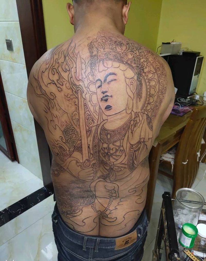 虚空藏菩萨纹身图片_背部老传统纹身图案