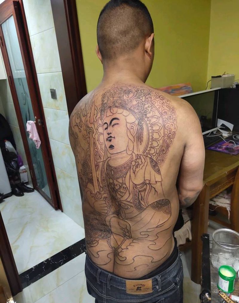 虚空藏菩萨纹身图片_背部老传统纹身图案